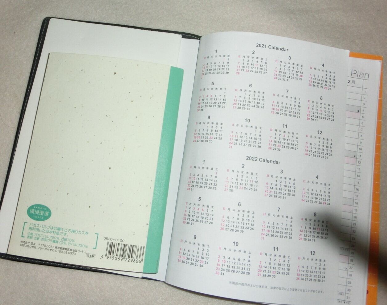 中身は色々組み合わせて使えます。工夫次第で、複数冊のノートを入れることができます。(写真は一例です。)